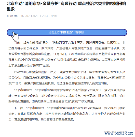 北京市网信办、北京金融监管局要求各网站平台严格履行主体责任,强化账号资质核验,全面清理违规信息,对违规账号依法依约采取禁言、暂停更新、限制营利权限、关闭账号等处置措施,坚决阻断网上非法金融活动及“黑灰产”获利渠道。